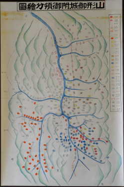 歴史 村山地域 山形市 上山市山形御城附御領分絵図やまがたごじょうふごりょうぶんえず 利用マーク教育非商用商用 お気に入りリストに追加名称山形御城附御領分絵図ふりがなやまがたごじょうふごりょうぶんえず提供団体山形県立図書館連絡先TEL:023-631-2523掲載サイトサイト名:山形県立図書館「絵図データベース」 サイトを開く概要水野氏時代の村々色分小判型絵図と思われる。サイズ及び形状 157×104㎝ 軸装 書写人 不明 書写年 不明