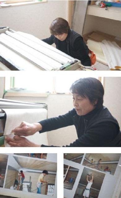 表具師として初代をかまえたご主人に嫁いだ時、畳屋との区別さえつかなかった。それがいつしか現場に出て手伝ううちに、なくてはならない片腕に。足場の下から主人の顔を見るだけで、何が必要なのか分かったという。