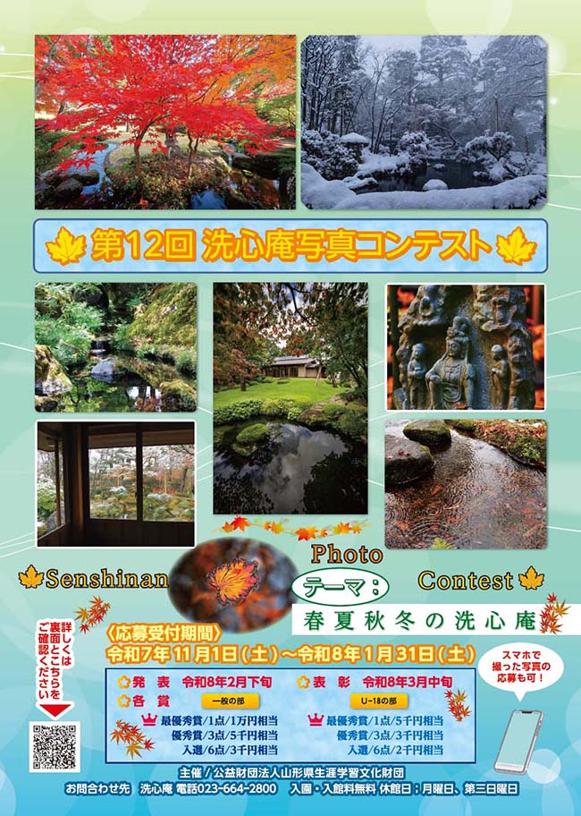 ※詳しくは、山形県緑町庭園文化学習施設「洗心庵」のHPをご確認ください。
